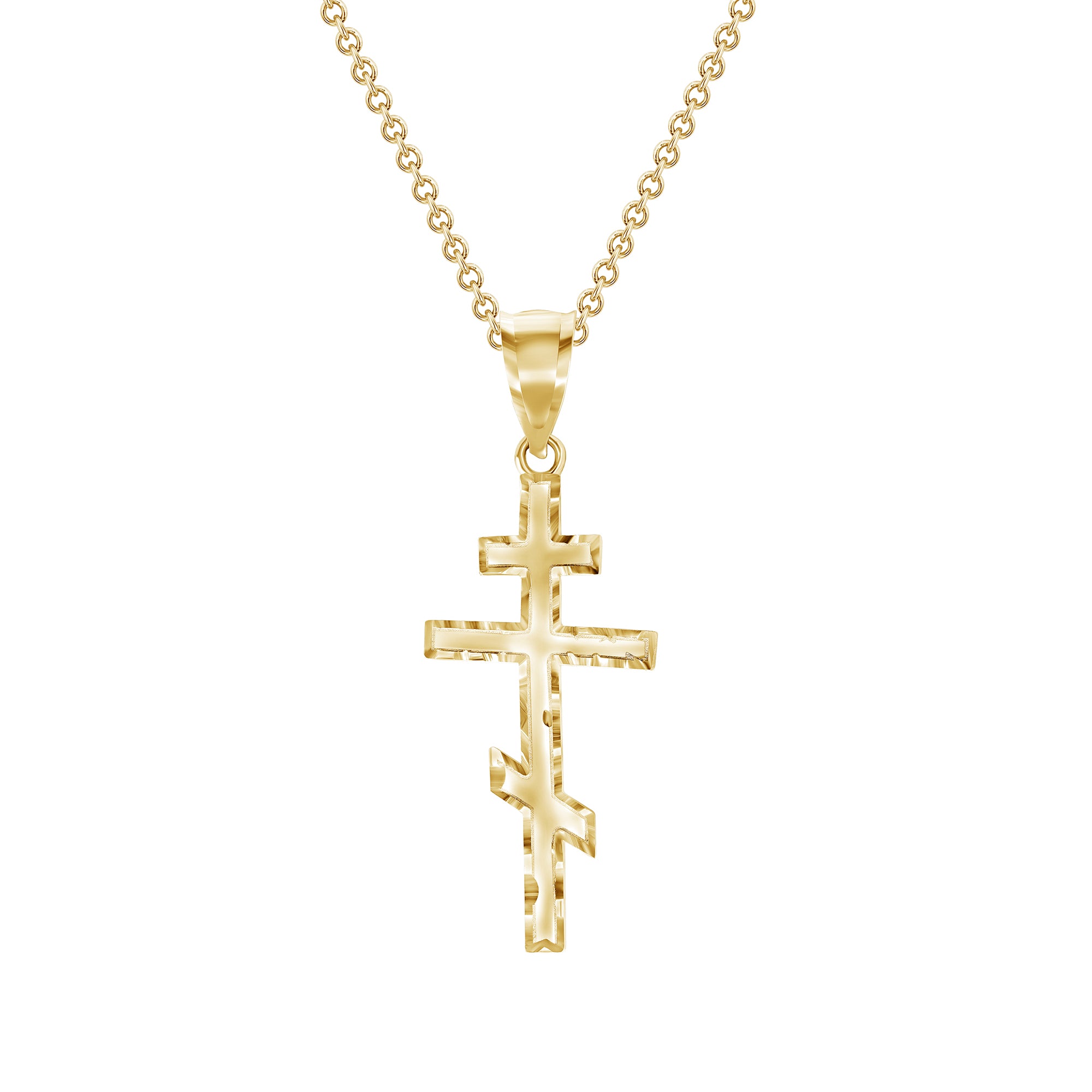 Gold Plated Diamond Cut Eastern Orthodox Cross Necklace - Vermeil Christian Cross Pendant For Men And Women - Religious Cross Charm - Christian Jewelry For Gifts Made In USA.